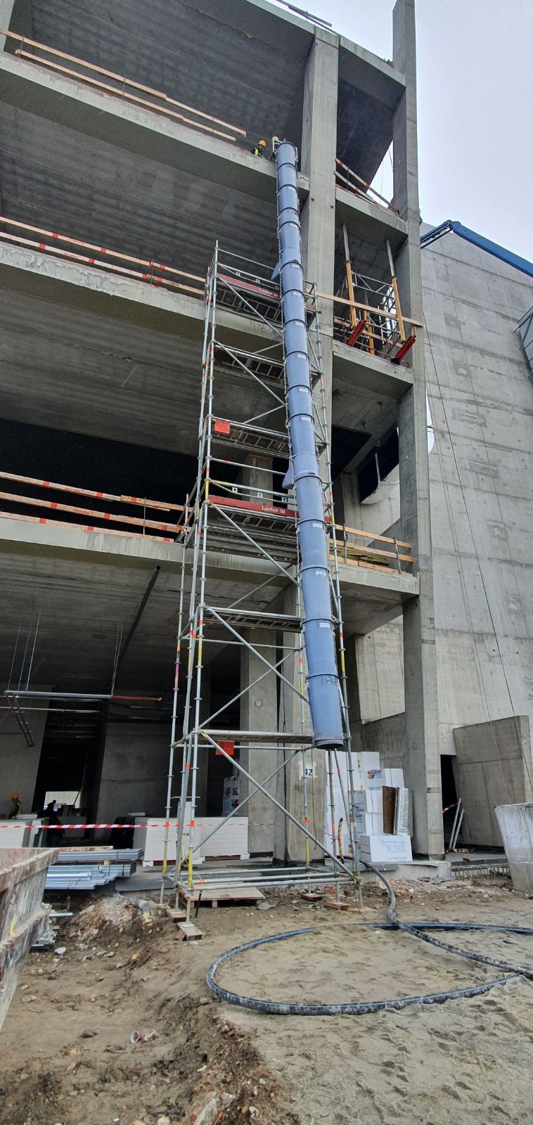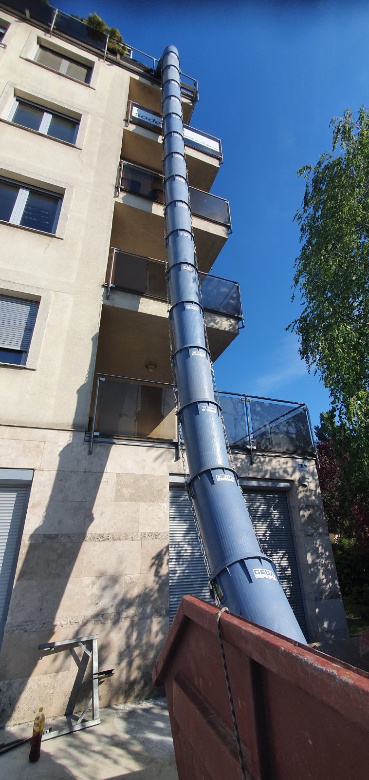 Törmelékcsúszda (GEDA): homlokzatra, födémre, állványra való rögzítése, csúszda elemek összeépítése-bontása, elemek karbantartása esetleges tisztítása (eltömődés esetén) vagy sérült elemek cseréje.