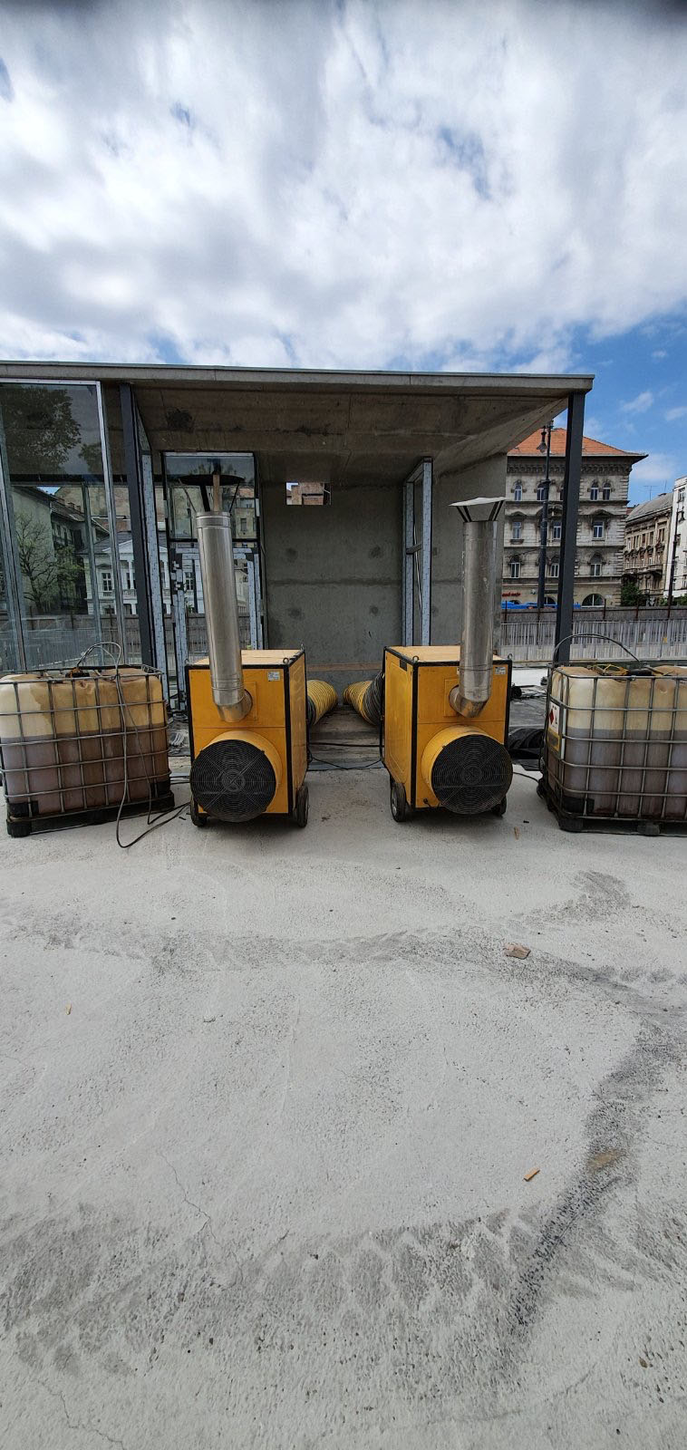 Hőlégbefúvók: becsövezése hővezető csővel, füstcsővel, termosztáttal való ellátása, légtelenítése (gázolajos hőlégbefúvó esetén) áram alá helyezése, üzemkészen a helyszínen átadva.Ipari klíma: becsövezése hővezető csővel, üzemkészen átadva.